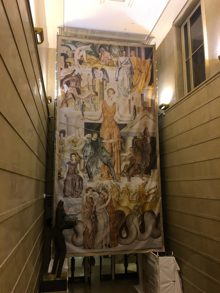Autre surprise : pas de problème pour obtenir une place au tout dernier moment! Et quand je dis « tout dernier »… Il était 16h20 pour une entrée à… 16h20! Car il faut retenir, pour pénétrer dans les lieux, et les flux se font toutes les 20 minutes. Le prix me paraissait assez élevé (32 euros), mais en cet après-midi où toute randonnée était exclue et tout déplacement rendu difficile par la chaleur, on ne comptait pas! Un petit café à l’ombre, avant de gagner le Collège et pour éviter la queue au soleil…