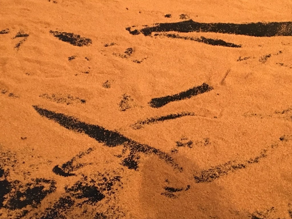 Je ne vais pas vous raconter tout le spectacle. Il faut le voir. Ou plutôt il faut le vivre. Dans son originalité. Dans sa singularité. Je devrais dire « dans la singularité de chaque être ». Allier spécificité, singularité, personnalité et unicité, fraternité, solidarité… est-ce ce qu’a voulu faire le chorégraphe? Si tant est que l’on puisse parler de chorégraphie ici, tant tout apparaît comme spontané, mais un spontané travaillé. Encore un oxymore! Tout est oxymore en somme, dans ce que j’ai ressenti de ce spectacle. Peut-être est-ce ce qui le rend si vivant, à la fois léger et profond, esthétique et émouvant, prenant et prégnant… Même le décor devient partie prenante de la danse, lorsque chacun-e se saisit d’un seau de caoutchouc noir pour déverser une sorte de sable ocre rouge sur le sol, créant des vaguelettes, des creux… ou lorsque les pas de danse retravaillent ce décor, sous forme de soleil géant, de formes plus ou moins circulaires….