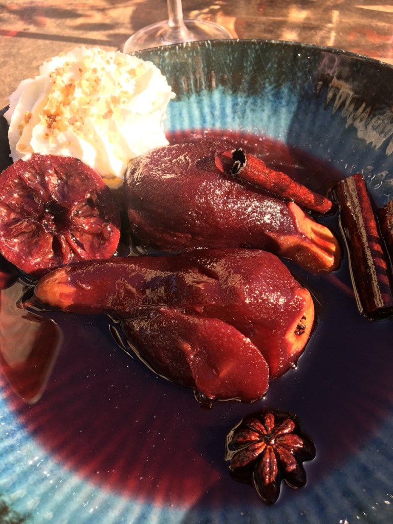 Parillada de poissons pour l’une, aïoli aux légumes craquants pour d’autres, et des desserts tous plus fins les uns que les autres, comme les poires au vin que j’ai appréciées à leur juste valeur… Bravo à l’équipe du Michel Ange!