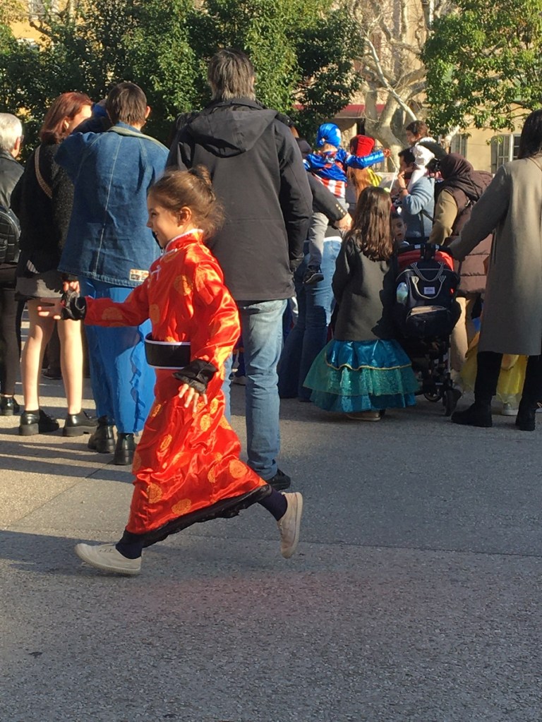 Pour ce qui me concerne, je suis allée voir celui de Vence. Un tout petit défilé, mais où chacun-e avait sa place. De l’intergénérationnel. L’absence de « clinquant ». Et de la joie partagée, notamment avec les enfants. Alors j’ai choisi de vous le faire « vivre » autant que possible, au travers de (mauvaises) photos et (piètres) films. Pour témoigner. Pour montrer que cela est encore. Malgré tout.