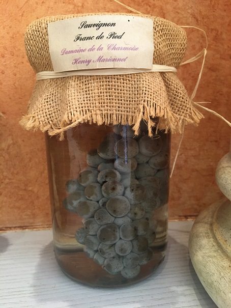 A l’accueil, une collection de bocaux au contenu original permet de « voir » les grappes en toute saison… Un premier exemple :