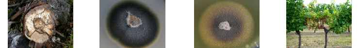« L’esca est un syndrome caractérisé par l’expression souvent irrégulière de symptômes sur les organes herbacés tels que des anomalies de coloration et des dessèchements et par la présence de désordres vasculaires et de nécroses dans le bois, à caractère évolutif.