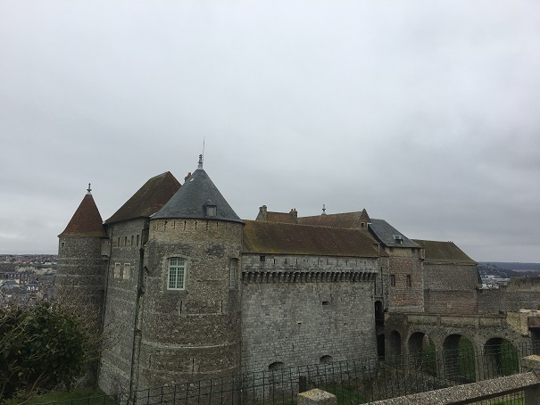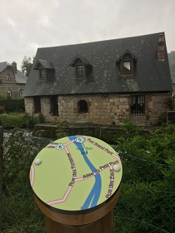 J’ai tenté de comprendre ce que signifiait la première syllabe, et me suis heurtée à plusieurs hypothèses : pour les uns, c’était le nom du Dominus, le maître de céans. Pour d’autres, cela proviendrait d’un terme germanique que je connais bien, car il est à l’origine du nom de l’une des Trois Villes Soeurs picardes, Eu : il s’agit d’auwa (diverses graphies possibles) qui désigne l’eau, fleuve ou prairie humide (même racine que le « aqua » latin, persistant dans nos mots français). Les constructions modernes qui se multiplient à l’embouchure de la Touques font oublier qu’il devrait y avoir effectivement des zones plus ou moins marécageuses dans les temps anciens. Il n’est qu’à voir cette carte du XIIème siècle pour l’imaginer…