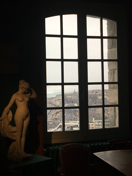 Nombre de résidences sont ainsi closes. Et de restaurants. Pas un bar ouvert le long de la plage. Heureusement, nous en avons trouvé un bien sympathique, en centre ville, le Cyrano. Bien kitch, comme décoration, mais avec des clients autochtones, ou presque, comme ce Parisien venu s’y installer à la retraite, qui m’a avoué ne savoir que faire de ses soirées. Car c’est le désert culturel, ici. En ce week-end de janvier, aucun concert ni pièce de théâtre! Une seule exposition, aux « Franciscaines« . J’ai appris depuis que cet endroit est à voir et fréquenter. Hélas trop tard… Je n’ai pas été tentée d’aller voir les photos de la soeur d’Amélie Nothomb…