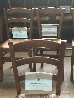 L’échange des regards, entre les « fidèles », dont j’ai appris plus tard par un ami pratiquant assidu qu’il remplaçait les poignées de mains souvent pratiquées. Mais ces « regards de paix » – pour reprendre le qualificatif du prêtre – prenaient en cette période cruelle un signification forte, et cela m’a beaucoup émue.