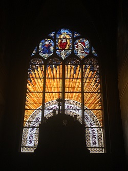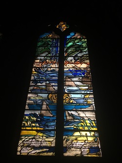 Loin de moi l’idée de vous lasser en passant en revue tous les détails de cet édifice. Je vous laisse le soin de les découvrir vous-même! Juste, en passant, une idée des vitraux dont la modernité saisit mais ne choque pas.