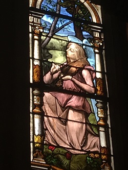 Un autre vitrail m’a profondément touchée. Ou plutôt, un détail de vitrail, plus ancien, celui-là.