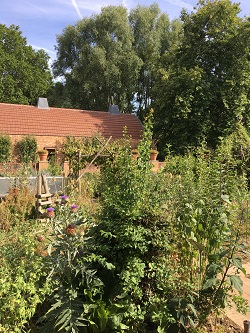 Puisqu’on en est aux « mystères », en voici un autre : que fait ici cette étrange composition? une fermette en bois, et des animaux faits de bric et de broc. Et une échelle bizarre, comme vous allez le constater.