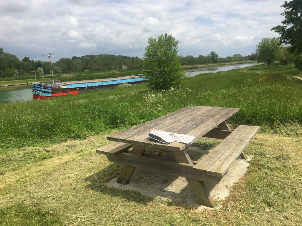 C’est pourtant le nom qui a été choisi pour le lieu que j’ai découvert hier, accosté près du port de la Râpée. Je me promenais en bord de Seine, près de la Gare d’Austerlitz et de la Cité de la Mode, quand j’aperçus cette « péniche » (mais peut-elle se mouvoir??? il semble que ce soit plutôt une barge… mystère!) en raison des coloris vifs qui la distinguaient. Vite, traverser le pont et la trouver sur le quai. Beaucoup de monde, visiblement, et j’ai failli ne pas y monter. Mais, la curiosité aidant, je décidai d’aller la découvrir. Et j’ai bien fait! Un lieu étonnant, une grande mixité selon tous critères, un vrai « lieu de vie et de rencontres ». Une DragQueen se promenait sur le pont, distribuant des papiers. J’appris par la suite qu’il s’agissait d’un jeu.