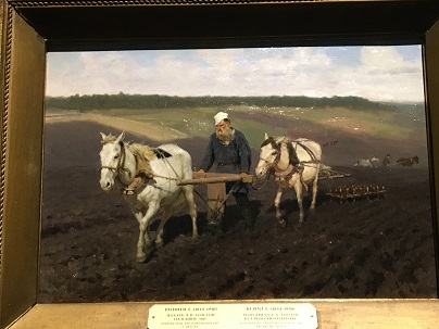 Des portraits, il y en a beaucoup dans l’exposition, notamment des artistes ou mécènes de son entourage. Et surtout de Léon Tolstoï, qu’il admirait énormément. Il en a peint plus de 70 portraits! Dont certains dans des activités inattendues, comme le labour…