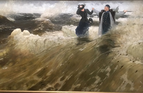 Impossible de retracer l’ensemble de l’exposition, bien sûr, et ce n’est qu’un petit éclairage que je puis en faire… Avec d’abord un focus sur la France. Inattendu, non? Mais Répine a séjourné dans notre pays, et certains de ses tableaux témoignent de son regard sur celui-ci, comme le ramassage des galets à Veules-les-Roses.
