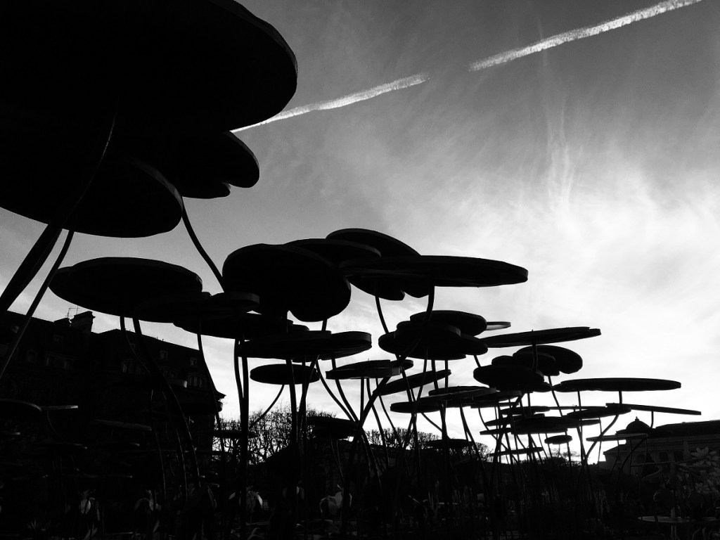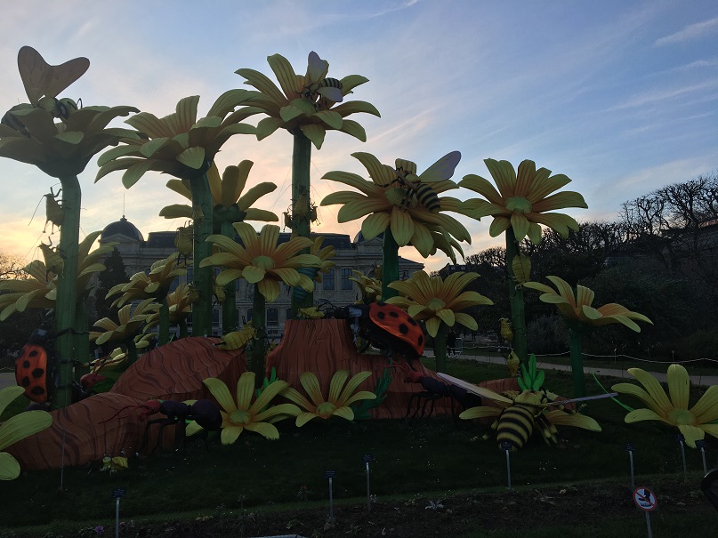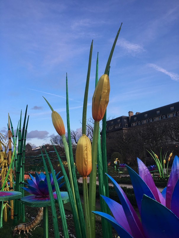 Une balade en bord de Seine, en un bel après-midi de janvier, m’a conduite par hasard au Jardin des Plantes. Une affiche, à l’entrée du Parc, indique une exposition qui, justement, se termine ce jour. Comme la nuit approche, il faut faire vite pour la découvrir! Un peu frileuse, je l’avoue, car ce que j’y avais vu les années précédentes, en cette même époque de l’année, avait quelque peu bousculé mes codes esthétiques… Et ce fut encore le cas. J’aurais dû me méfier, en voyant l’affiche.
