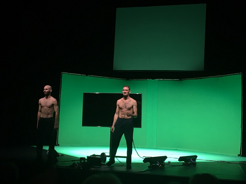 Les écrans s’allument. Apparaissent deux speakerines. Tout aussi barbues. Elles commencent à dialoguer avec les artistes sur scène, en forçant le trait sur les stéréotypes de la féminité stupide. Puis leur demandent de danser. Ils s’exécutent. Une danse moins aboutie que précédemment. Ce que soulignent les deux autres. Jusqu’au moment où l’on comprend qu’il manque un fond d’images filmées. Oubli réparé. La danse prend alors un tout autre sens.